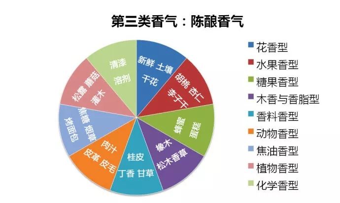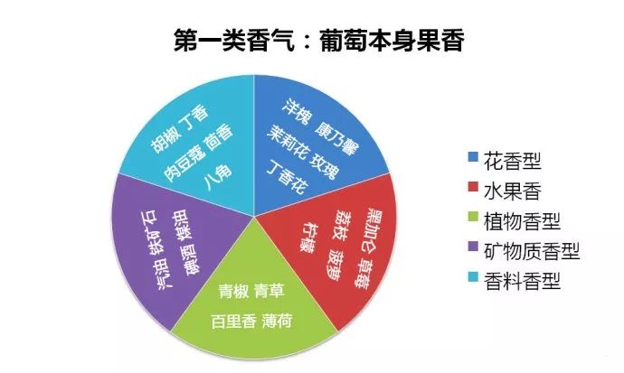接下來,你需要做的就是判斷香氣的類型,并進一步推斷葡萄酒的類型、酒齡和品種等。那么,葡萄酒究竟有哪些類型的香氣呢?