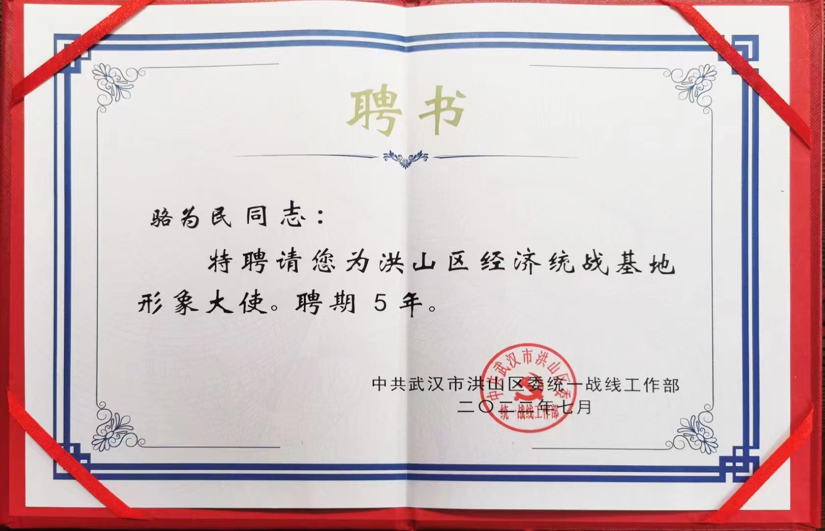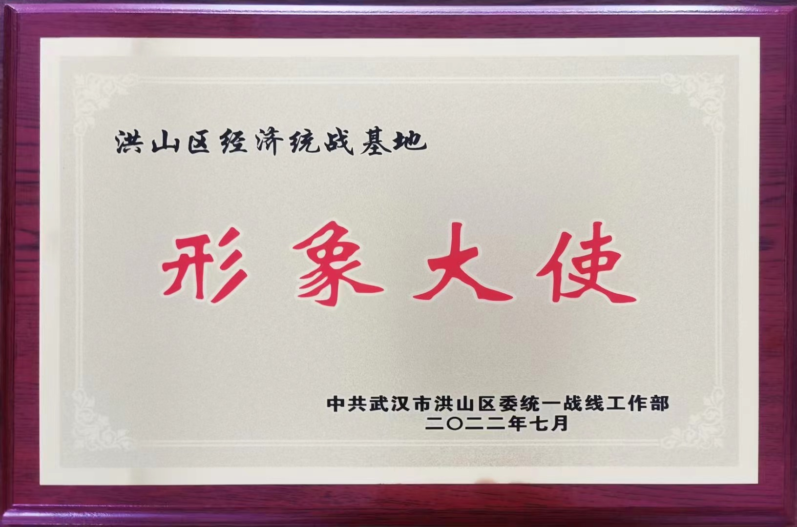 我司駱為民董事長出席活動(dòng),并被榮幸聘為“洪山區(qū)經(jīng)濟(jì)統(tǒng)戰(zhàn)基地形象大使”。駱為民董事長將時(shí)刻踐行使命與責(zé)任,為建設(shè)洪山區(qū)經(jīng)濟(jì)統(tǒng)戰(zhàn)品牌、探索民營經(jīng)濟(jì)統(tǒng)戰(zhàn)新思路、助力民營企業(yè)新發(fā)展貢獻(xiàn)智慧和力量。