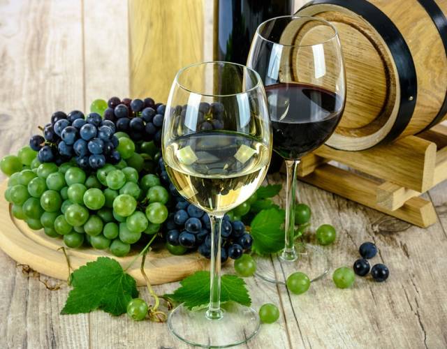 白葡萄酒斟入杯中為2/3;