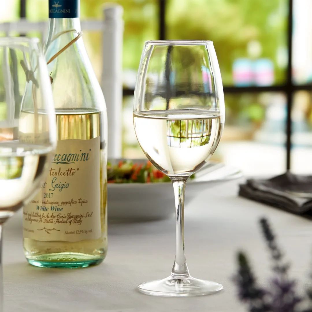 寬大的杯肚能使葡萄酒的復雜香氣與足夠的空氣融合。較大的杯口能讓你在低頭靠近的時候聞到香氣,酒液從舌尖流入口腔兩側,從而品嘗到別致的白葡萄酒的酸味。