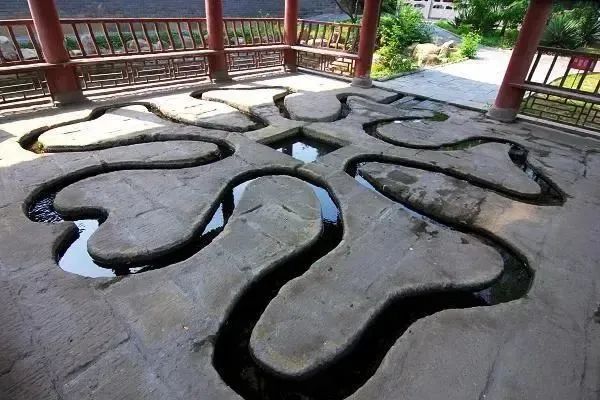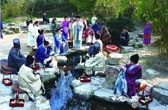 據(jù)記載,類似上巳曲水之類的 “雅事”, 其余韻一直蔓延到二十世紀(jì)四十年代;而 “禊賞亭” 、 “流杯亭” 之類的景致,迄今還可在北京故宮、紹興蘭亭等處可見(jiàn),不過(guò)都是在石基上鑿成迂回曲折的溝槽的微型景觀,不再有王羲之筆下 “有崇山峻嶺,茂林修竹;又有清流激湍,映帶左右” 那種大自然的情趣了。