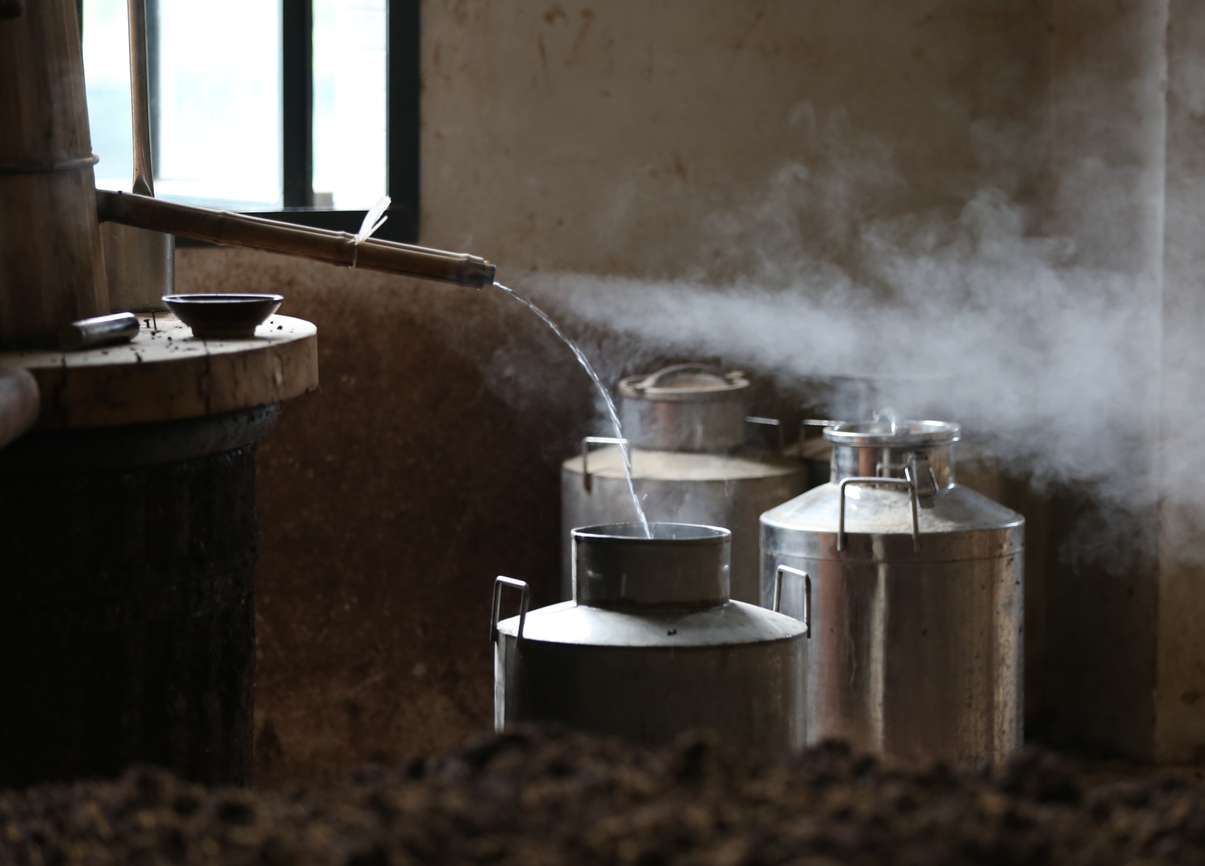 醬香型白酒以高粱和小麥為主要釀造原料,采用“12987”釀造工藝,即端午制曲、重陽下沙,一年的1生產(chǎn)周期,兩次投料,九次蒸煮,八次發(fā)酵,七次取酒。這種工藝使得酒體中的有益微生物充分發(fā)酵,形成了與醬香酒香氣直接相關(guān)的物質(zhì)及一些香氣香味的前體物質(zhì)。同時(shí),高溫餾酒有利于直接揮發(fā)掉一些有害的物質(zhì),使得酒質(zhì)更加純凈。醬香型白酒的生產(chǎn)過程中,第一次投料稱為下沙,“沙”指的是高粱。